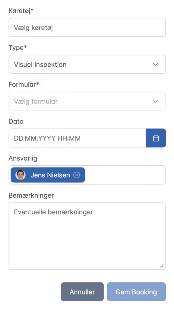 In addition to automatic scheduled inspections, you can also make specific bookings as needed.