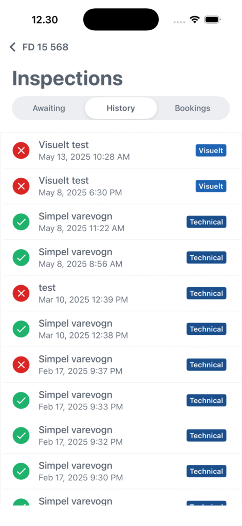 - Select relevant form for technical/visual/tire inspections